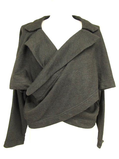■カシュクール変形プルオーバージャケット グレー カシュクール型の立体的なデザインのプルオーバージャケットです。生地はスウェット生地です。 |