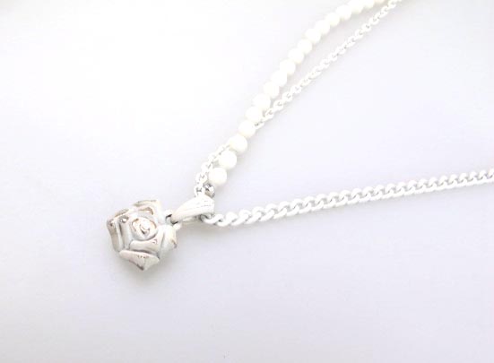 ■ローズペンダントトップ&チェーン ホワイト ローズ型のペンダントトップとチェーンを使ったお品。 |