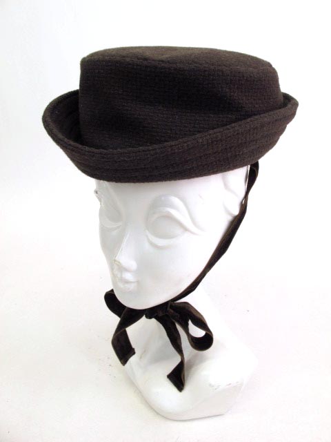 ■ベルベットリボンハット 茶 厚手の平天ハットにベルベットリボンをつけたハットです。 |