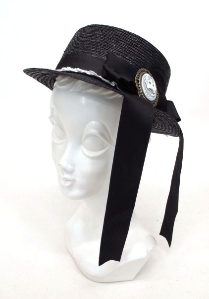 ■カメオ付きカンカン帽子 黒 カメオ付きのカンカン帽です。 |
