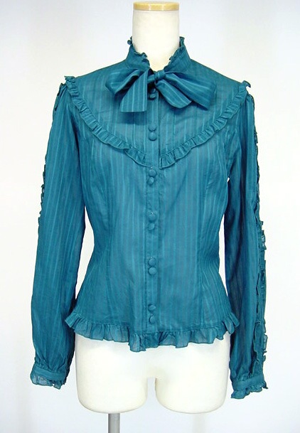 ■ストライプボウタイブラウス グリーン ストライプ柄のボウタイ付きブラウスです。 |