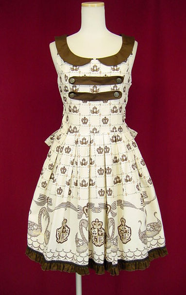 ■スワンレース衿付ジャンパースカート 生成り×茶 スワンレース衿を使ったジャンパースカートです。衿等はお取り外しが可能です。 |