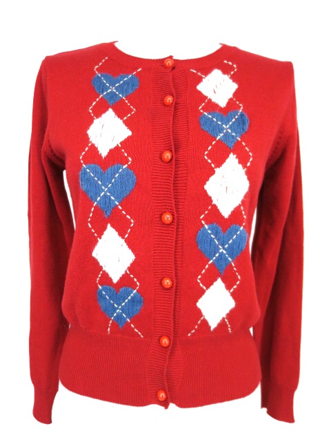 ■トランプアーガイルカーディガン 赤 細かなニットの毛羽立ちが見られますが、特に目立った汚れやダメージなどは見られず普通にお使いいただけます。 |