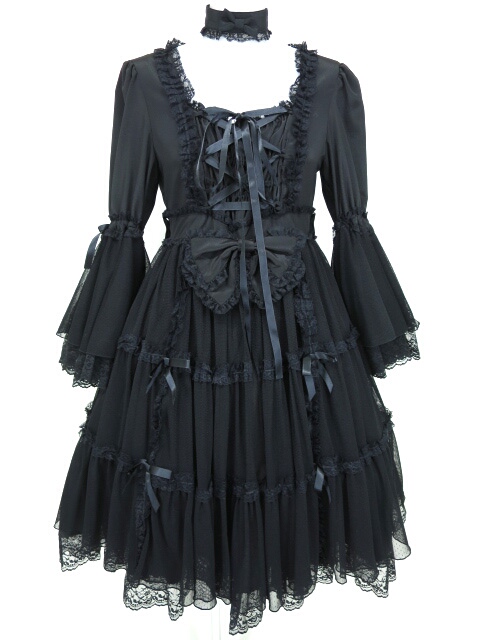 ■ドットチュール切替ベビードールワンピース 黒 姫袖のゴージャスなベビードールワンピースです。 |