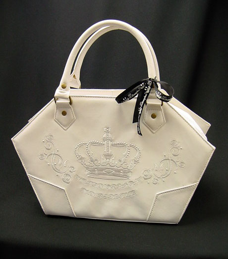 ■王冠刺繍バッグ 白 王冠刺繍を入れた上部ファスナーを使いのバッグです。 |
