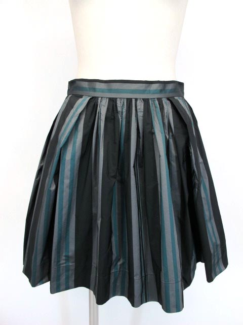 ■カルデ ストライプノースリーブワンピース グリーン×紺×グレー 胸元が美しいマルチストライプでクラシカルなジャンパースカートです。 |