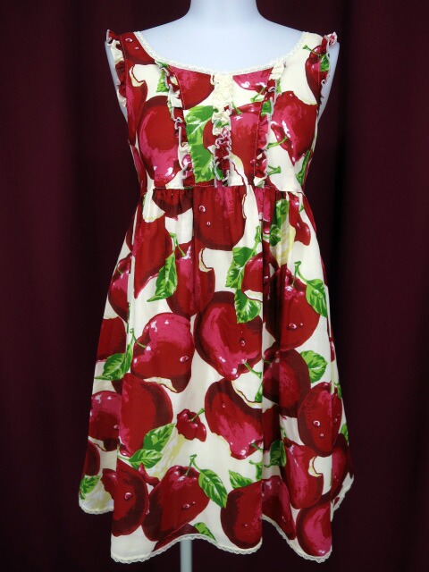 ■アップルポイズン ベビードール アイボリー×赤 毒りんごをイメージしたアップル柄ジョーゼットシフォン生地のワンピースです。 |