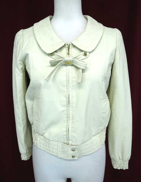 ■スウィート バッド ジャケット アイボリー 2012年春物、ヒョウ柄裏地のジップアップ合皮ジャケットです。 |