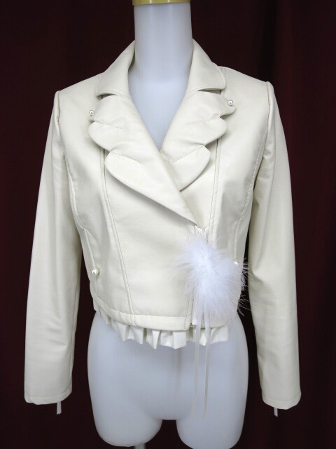 ■フェザーライダースジャケット アイボリー 2015S/S、フェザーの形をした襟が特徴的なライダースジャケット! ジップアップ部分にボンボン付き♪ |