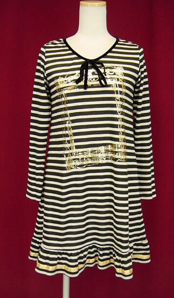■フレームワンピース クリーム×ブラックボーダー ボーダー柄のカットソーワンピースです。フレームのゴールドプリントが入っています。 |