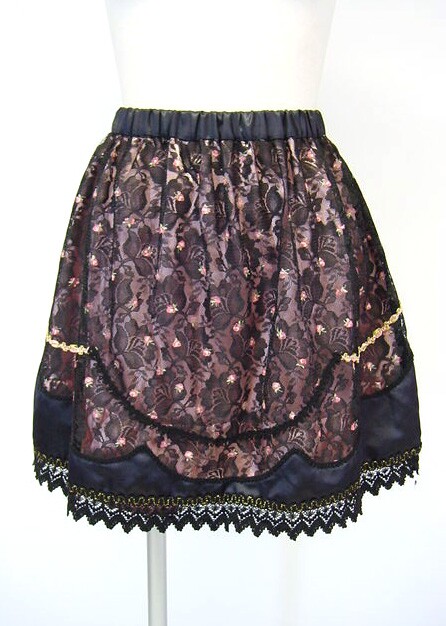 ■ローズタルトスカート 黒×ピンク 2012A/Wのコレクション。レースに薔薇プリントを加えたタルトスカートです。ウエストゴム入りです。 |