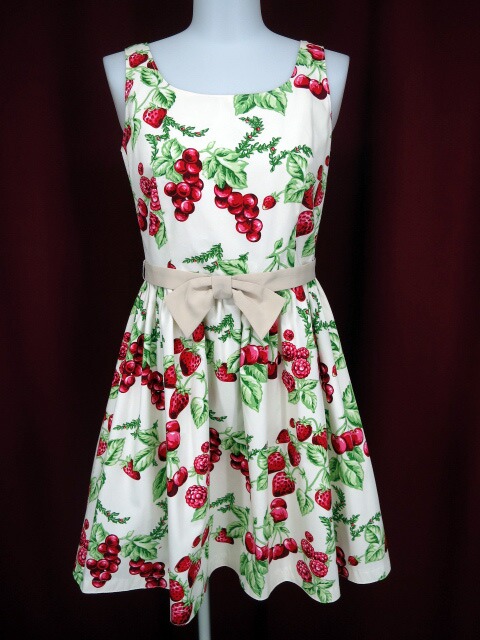 ■CHERRY garden ドレス アイボリー ジューシーでどこかクラシカルなCHERRY gardenシリーズ♪ウエストから広がるボリューミーなスカートにリボンベルトがスッキリとした印象に。 |