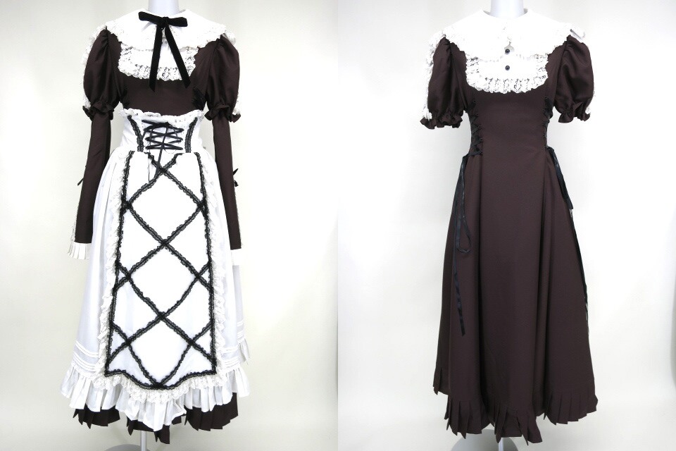 ■アンティークドールメイド アンヌマリー ダークブラウン エプロンのセットになったメイドロングワンピースです。 |