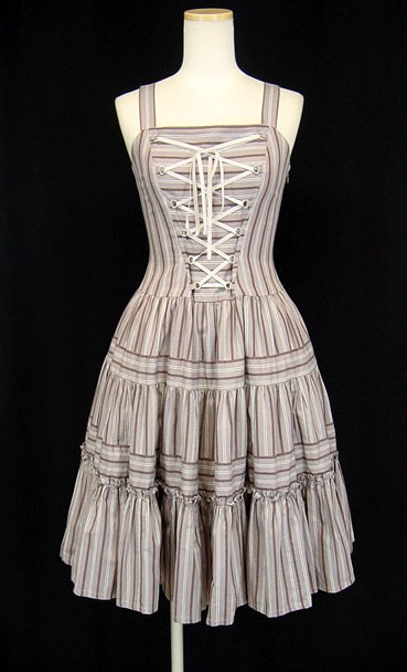 ■レジメンタルストライプジャンパースカート ボルドーグレー 編み上げ使いのレジメンタルストライプ柄ジャンパースカートです。 |