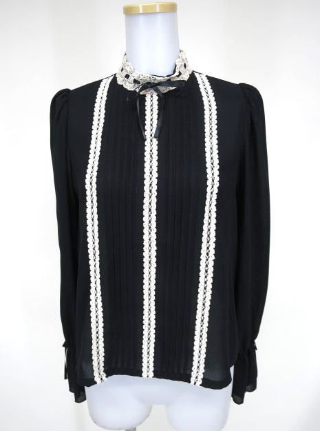 ■ジョーゼット背中ジップブラウス 黒 背中に着脱ジッパーの付いたジョーゼット生地のプルオーバーブラウスです。 |