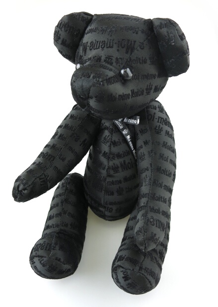■テディベア 黒 モワティエのロゴのフロッキープリント柄生地のテディベアです。 |