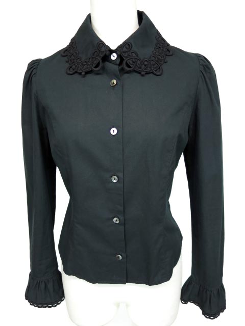 ■レース付き丸衿ブラウス 黒 衿と袖口に飾りレースの付いた丸衿ブラウスです。 |