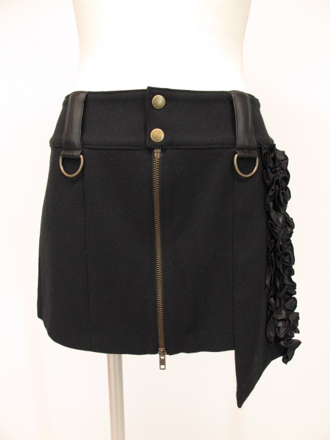 ■フリル付きアシンメトリースカート 黒 フリルのたくさんついたアシンメトリーデザインのジップスカートです。 |