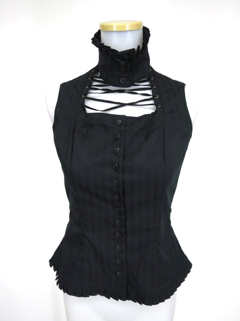 ■編み上げ付きノースリーブブラウス 黒 胸に編み上げのついたデザインのノースリーブブラウスです。 |