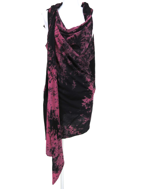 ■むら染め変形ジレ 黒×ピンク ムラ染めの薄手のカットソー生地のアシンメトリーデザイン変形ジレです。男女兼用でお使いいただけます。 |