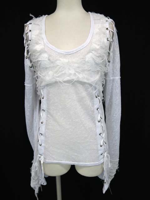 ■サイドロングカットソー 白 サイドの丈の長いダメージの入った薄手のガーゼのような生地のカットソーです。 |