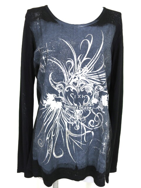 ■Lightning カットソー 黒×グレー シルバーの箔プリントやスプレーのような加工の施されたカットソー(ロンT)です。 |