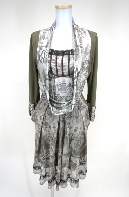 ■キャミソール&チュニックセット オリーブ 深いUネックのチュニックワンピースとキャミソールのセットです。 |