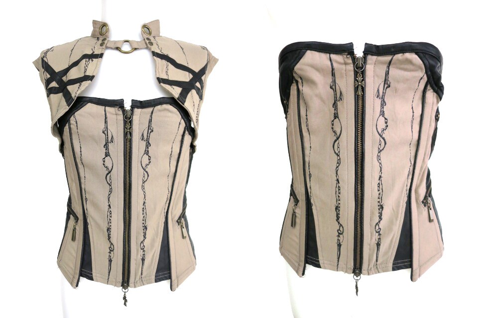 ■ボレロ付きコルセット カーキ×黒 ソフトボーンの入ったコルセットで、ボタンでボレロ部分が着脱できます。 |