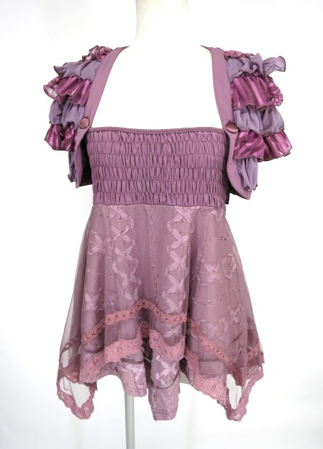 ■ボレロ付きシャーリングベアトップ パープル 着脱できるボレロの付いたシャーリングベアトップチュニックです。 |