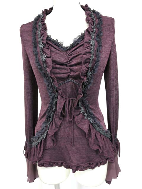 ■ボレロ風プルオーバーカットソー 紫 ボレロを重ねたような切り替えデザインのカットソーです。 |