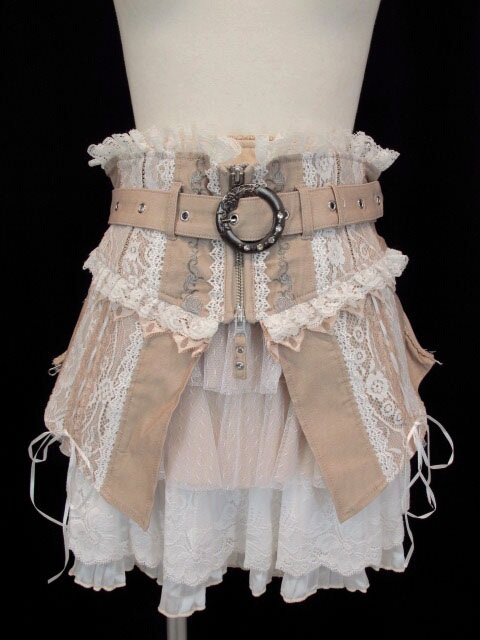 ■レースペチコート付きスカート ベージュ×白 レース切替のペチコート付きスカートです。ベルト付属。 |