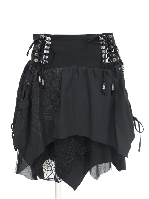 ■蜘蛛の巣刺繍スカート 黒 蜘蛛の巣の刺繍の入ったゴシックなデザインのスカートです。内側にはチュールと蜘蛛の巣柄のレースが付いております。 |