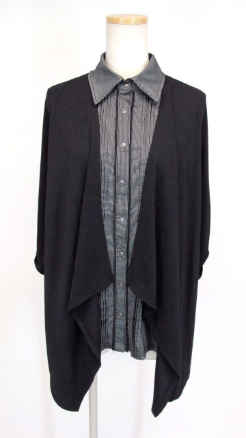 ■重ね着風切替ブラウス 黒×グレー 重ね着風の切替ブラウスです。ドレープ調の重ねデザイン。 |