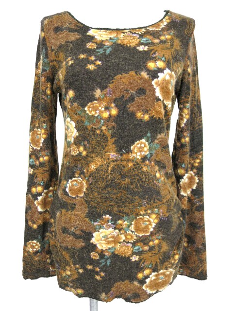 ■龍和柄ニットカットソー ブラウン ややニットの毛羽立ちが見られ着用感が感じられます。 |