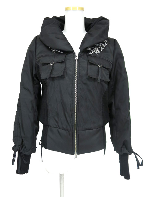 ■ 中綿入りジップアップブルゾン 黒 肩から胸に刺繍の入ったショート丈タイプのブルゾンです。 |