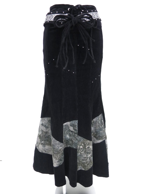 ■ニット切り替えコーデュロイロングスカート 黒×グレー 和柄ニットとコーデュロイ生地の切替ロングスカートです。ベルト付き。 |