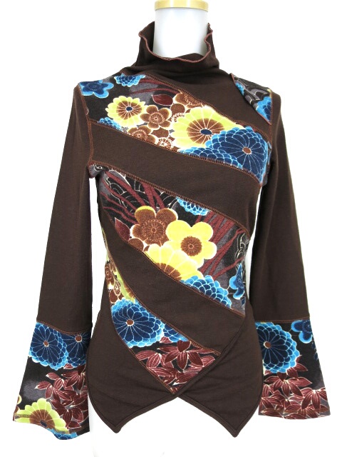 ■和柄切替ハイネックニットカットソー 茶 ややニットの毛羽立ちが見られ着用感が感じられます。 |