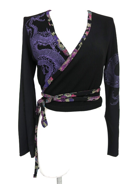 ■編み上げ付き染めノースリーブカットソー 黒×紫×茶 フロッキープリントの入ったフロント編み上げのノースリーブカットソーです。 |