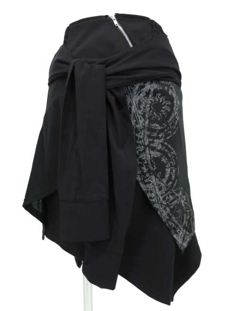 ■シャツ巻き風レイヤードスカート 黒 ウエストは腰にシャツを巻いたような飾り布の付いたデザインになっております。ウエスト両脇はシャーリングゴムになっています。 |