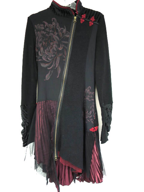 ■ニット切り替えジップアップワンピース 黒×ボルドー ニットやサテンプリーツなど異種素材の切り替えになったワンピースです。 |