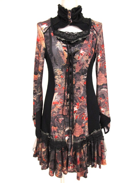 ■ニット切替和柄ワンピース 黒 ニット生地と和柄生地の切替デザインのワンピースです。 |