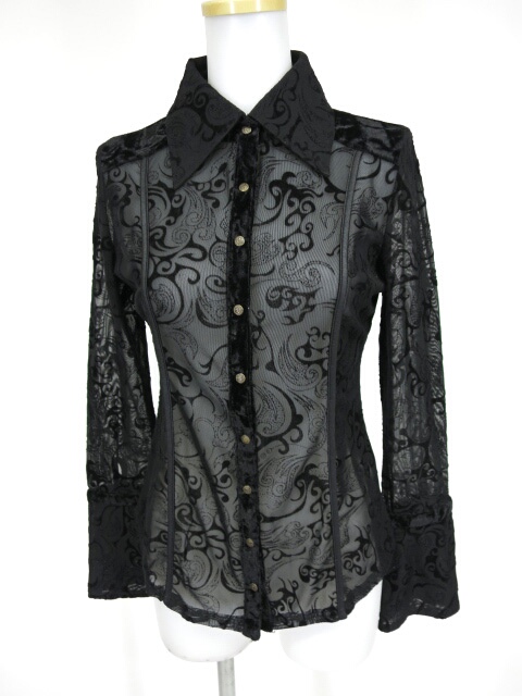 ■ベロア切替ブラウスカットソー 黒 フロッキープリントの入ったメッシュチュールのブラウスです。 |