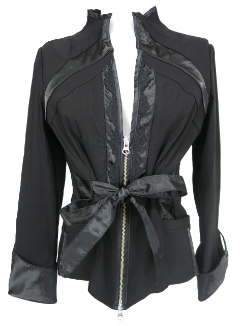 ■リボン付きジップジャケット 黒 フロントの真ん中からジップが付いております。ポケット付き。 |