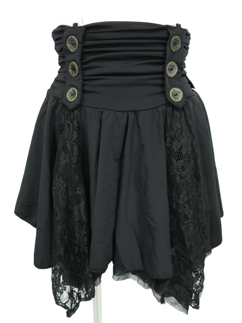 ■レース切替2wayスカート 黒 トップスとしてもお使いいただけるスカートです。内側にはメッシュ生地が使用されております。ウエスト後ろに薔薇の刺繍入り。 |