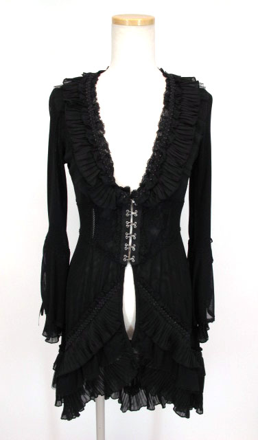 ■ロング丈シースルージャケット 黒 ロング丈のシースルー編み上げジャケットです。伸縮性ある素材を使った一着です。 |