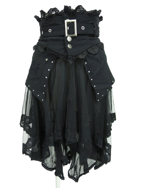 ■ローズ刺繍オーバースカート 黒 メッシュのスカートにオーバースカートを重ねるタイプのスカートです。ウエストベルトが付いております。 |