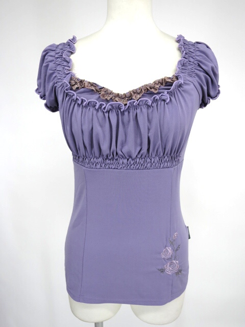 ■ローズ刺繍入りシャーリングカットソー パープル バラの刺繍の入ったカットソーです。 |