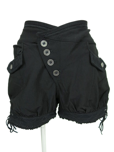 ■ローズ刺繍入りショートパンツ 黒 レースやブレード、刺繍などが施されたショートパンツです。 |