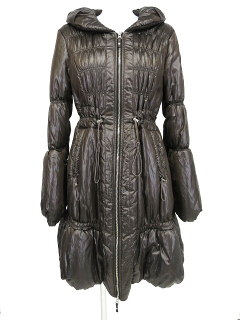 ■中綿入りジップアップコート 茶 前面についている絞りでアレンジ可能です。中綿入りで暖かくなっております。 |