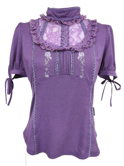 ■胸レース切替半袖カットソー パープル 胸元がレース切替になった半袖カットソーです。 |